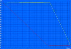 Bei der Auswertung unseres Stresstests sieht man dann auch, warum die Kühlung hier alle Hände voll zu tun hat. Der Prozessor muss mit der Zeit zwar an Leistung einbüßen und arbeitet letztlich nur noch mit 4x 1,8 GHz (~14 W TDP), doch die Grafikkarte läuft dauerhaft mit dem maximalen Boost-Takt von rund 1.520 MHz. Ein 3DMark-11-Durchlauf im Anschluss an den Stresstest ergab – wie vermutet – kein geringeres Ergebnis.