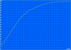 Das Display flackert mit 1412 Hz (im schlimmsten Fall, eventuell durch Pulsweitenmodulation PWM) bei einer eingestellten Helligkeit von 90 % und darunter. Darüber sollte es zu keinem Flackern kommen. Die Frequenz von 1412 Hz ist sehr hoch und sollte daher auch bei empfindlichen Personen zu keinen Problemen führen. Im Vergleich: 53 % aller getesteten Geräte nutzten kein PWM um die Helligkeit zu reduzieren. Wenn PWM eingesetzt wurde, dann bei einer Frequenz von durchschnittlich 8101 (Minimum 5, Maximum 343500) Hz. | |||