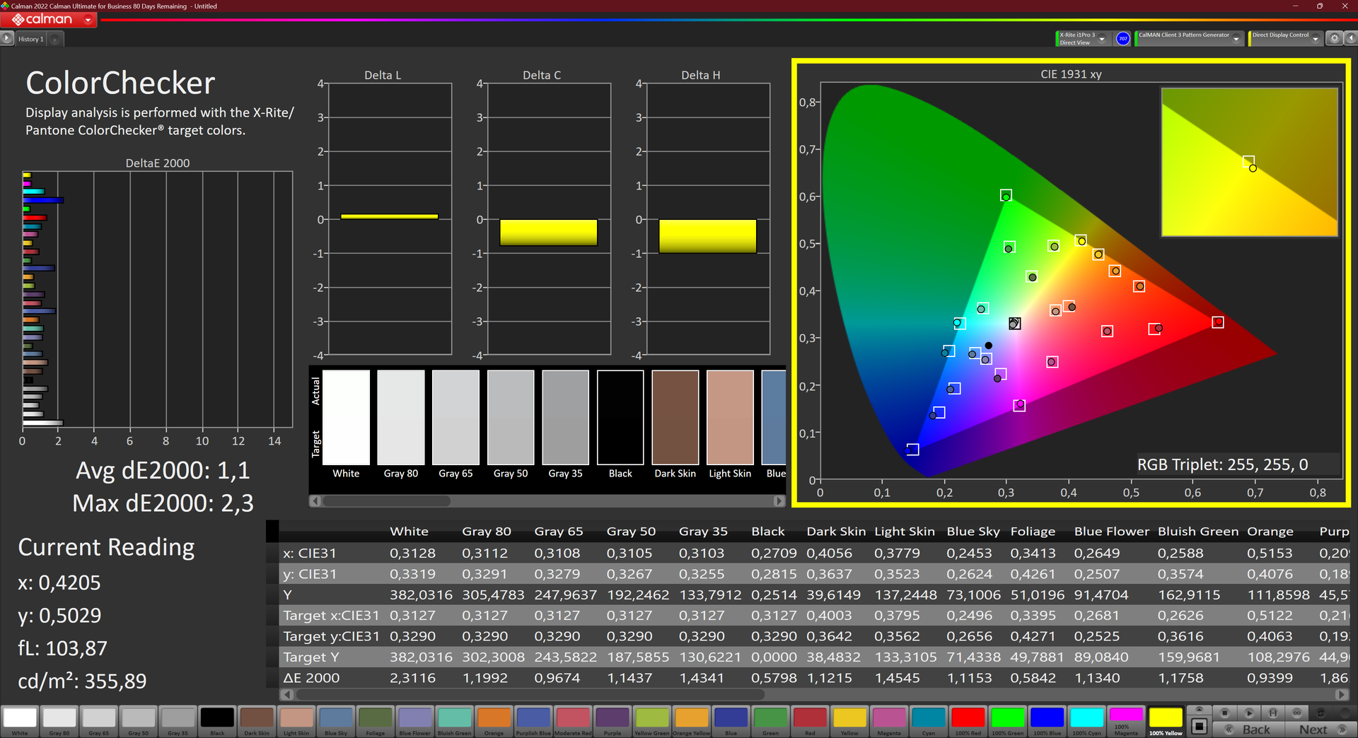ΔE ColorChecker Calman: 1.1 | ∀{0.5-29.43 Ø4.78}