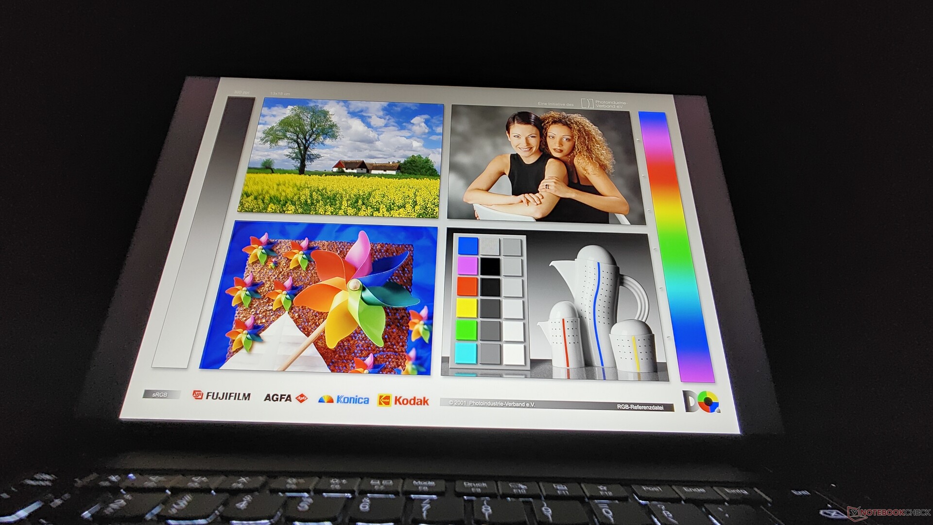 Der Bildschirm kann den kleinen sRGB-Farbraum nicht ganz vollständig abbilden, die Abdeckungsrate liegt bei 94,6 Prozent.