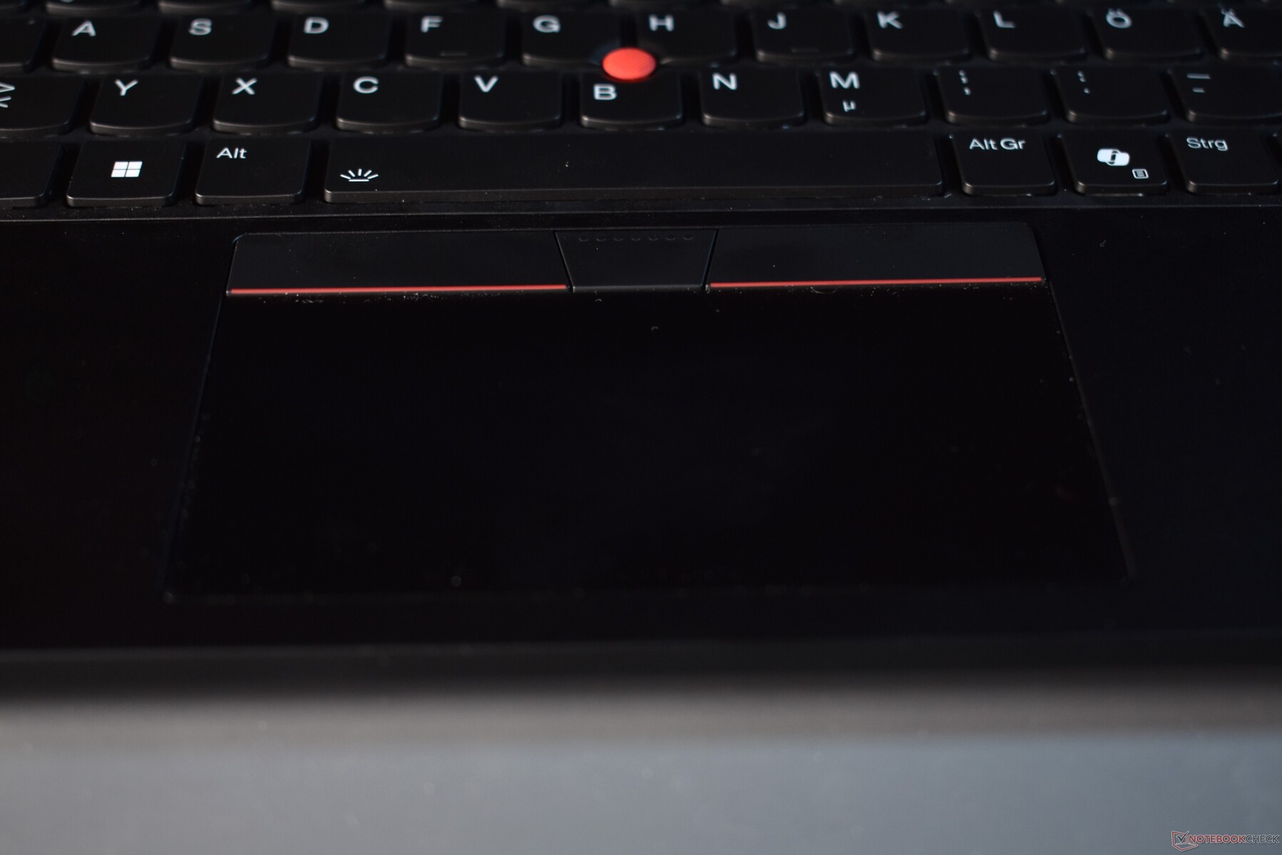 Während Lenovo die Tastatur äußerlich etwas renoviert hat, nimmt man beim Mausersatz keine Änderungen vor. Es bleibt bei der Kombination aus TrackPoint mit dedizierten Maustasten sowie einem Touchpad, das ein mechanisches Clickpad ist. Beide Eingabegeräte funktionieren tadellos; Probleme mit dem TrackPoint, wie wir sie etwa beim ThinkPad T14s Gen 5 hatten, gibt es hier nicht. Das Touchpad hat eine mittlere Größe und setzt auf eine Kunststoff-Oberfläche, die eine gute Gleitfähigkeit bietet, aber schnell dreckig wird und nicht so hochwertig wie eine Glas-Oberfläche ist. Der TrackPoint hat seine Stärken bei Drag-und-Drop-Operationen sowie in beengten Platzverhältnissen. Alles in allem sind es gute Eingabegeräte, die beide ihre Berechtigung haben und mit denen sich der Mauszeiger präzise steuern lässt.
