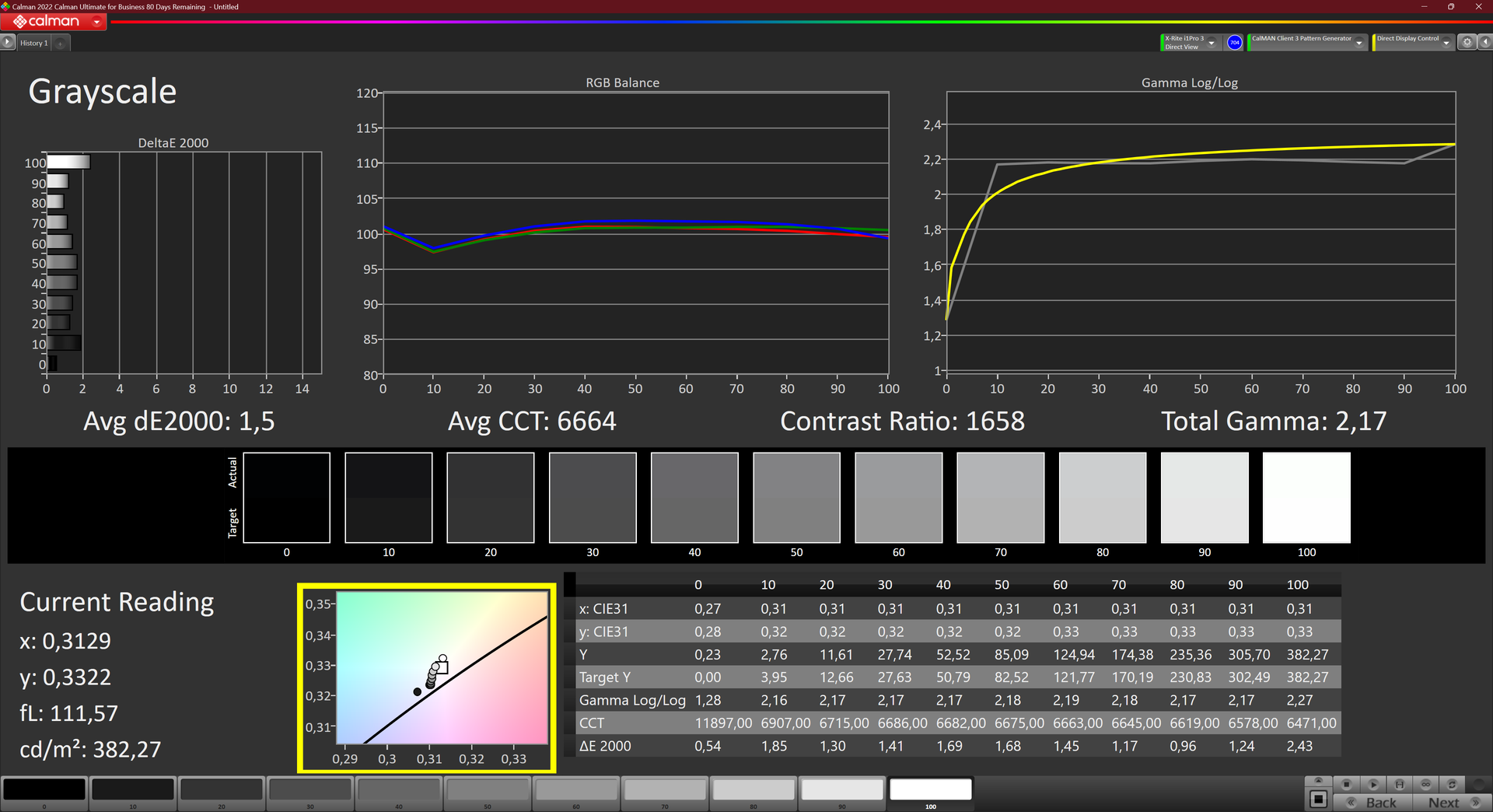 ΔE Greyscale Calman: 1.5 | ∀{0.09-98 Ø5}