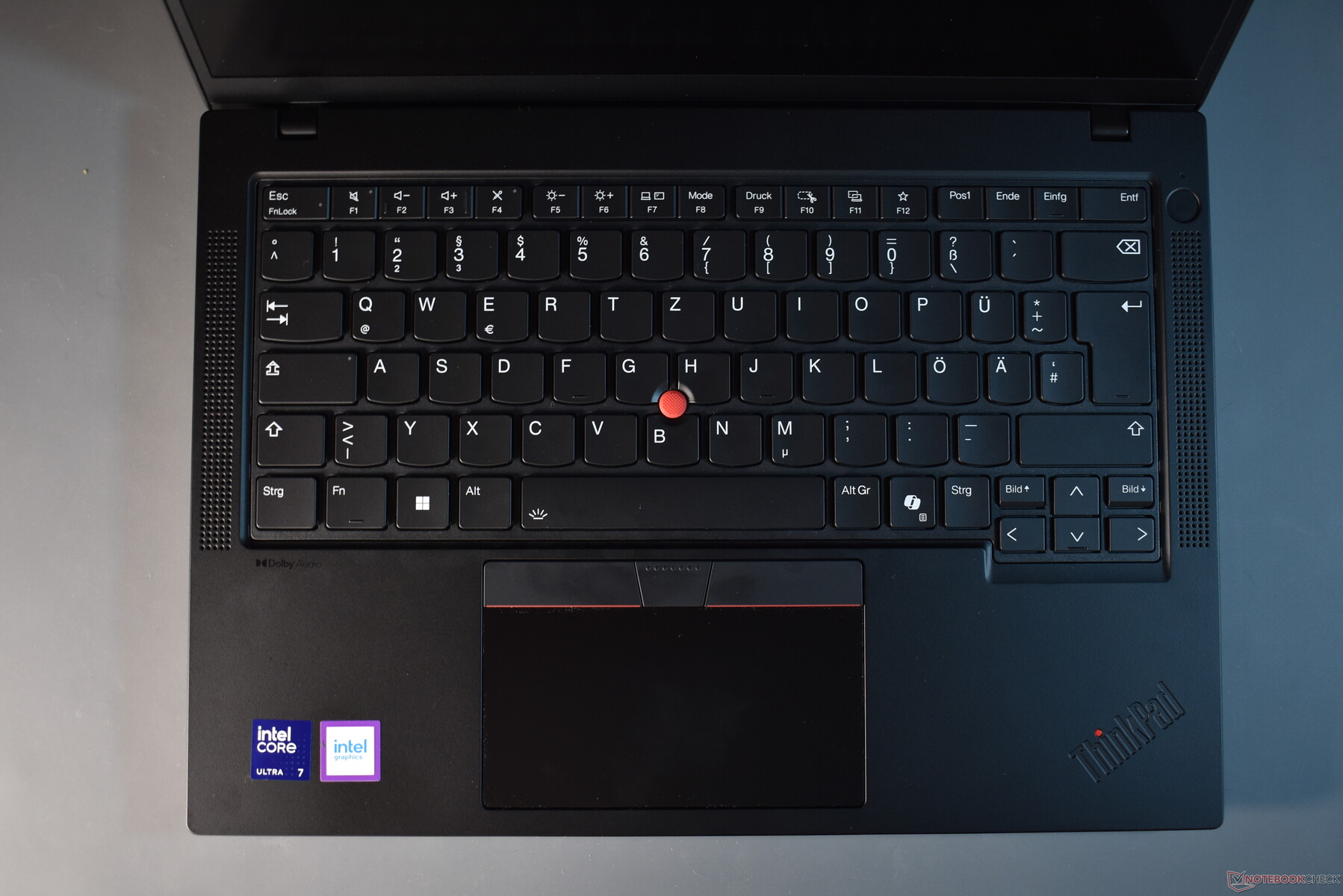 Veränderungen nimmt Lenovo beim Layout und der Tastenbelegung vor. So tauscht man die Strg- und FN-Taste, sodass sie Strg-Taste links der TN-Taste ist - erstmals in der Geschichte der ThinkPads. Für langjährige ThinkPad-Nutzerinnen und Nutzer dürfte das eine Umgewöhnung bedeuten. Umsteiger von anderen Geräteklassen werden sich dagegen leichter zurechtfinden. Die Tastenbelegung lässt sich weiterhin im UEFI-BIOS tauschen. Des Weiteren neu ist die Copilot-Taste. Dafür weicht die Druck-Taste, die nun die Doppelbelegung von F9 darstellt. Zu guter Letzt führt Lenovo fühlbare Markierungen auf einigen wichtigen Tasten wie FN, Enter, Einfg sowie den Lautstärketasten ein, die Sehbehinderten die blinde Bedienung des Keyboards einfacher machen sollen.
