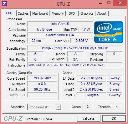 Das ThinkPad T430u ist das erste und bislang einzige Modell der T400 Serie, welches nicht auf herkömmliche 35-Watt-CPUs, sondern sparsame ULV-Prozessoren mit nur 17 Watt TDP setzt. Dies wirkt sich zwar positiv auf Leistungsaufnahme und Temperaturentwicklung aus, ist aber auch mit Einbußen bei der Performance verbunden. In unserer Ausstattungsvariante werkelt das Mittelklassemodell Core i5-3317U, welches über zwei Rechenkerne mit je 1,7 GHz Basistaktrate verfügt. Abhängig von der Auslastung kann die Ivy-Bridge-CPU einen Turbo Boost bis maximal 2,6 GHz zünden und zudem auf die Hyper-Threading-Technik zurückgreifen. Alle weiteren Details hält wie immer unsere CPU-Datenbank bereit.