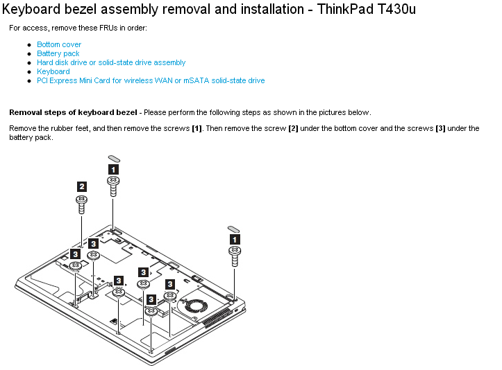 Um an den Arbeitsspeicher, den mSATA-/Mini-PCIe-Slot und das WLAN-Modul zu gelangen, ist schon etwas mehr Aufwand erforderlich: Hierfür muss zusätzlich die Tastatur entfernt werden, was von Lenovo in einer detaillierten Step-by-Step-Anleitung beschrieben wird. Wir haben uns diesen Schritt deshalb erspart und wollen an dieser Stelle nur auf das entsprechende Dokument verweisen.