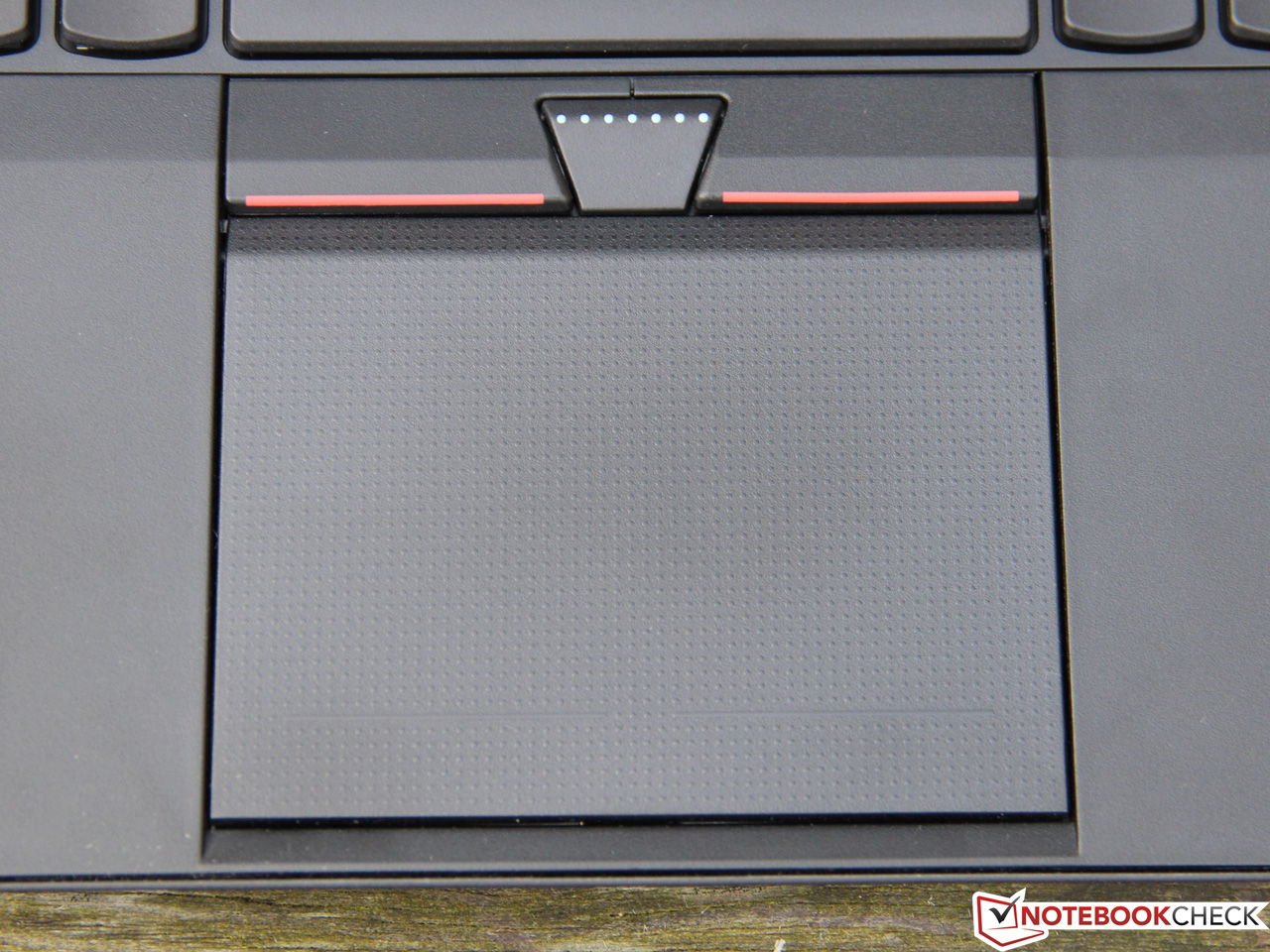 Alternativ steht selbstverständlich auch das bereits erwähnte Touchpad zur Verfügung, welches mit 9,3 x 6,5 Zentimetern endlich eine adäquate Größe besitzt. Die Oberfläche ist nun etwas feiner strukturiert als bei früheren Modellen, überzeugt aber noch immer mit einer ausgezeichneten Präzision. Anstelle mittels dedizierter Tasten erfolgen Mausklicks per Druck auf die entsprechende Ecke des Touchpads, was auch als Clickpad-Bauweise bezeichnet wird. Wir würden uns noch einen etwas festeren Druckpunkt sowie einen kürzeren Hubweg wünschen, doch ist das Pad auch so eine spürbare Verbesserung gegenüber dem des T430/T430s.