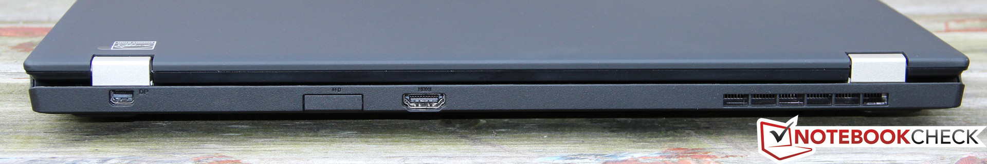 Die Anschlüsse, zu denen auch GBit-LAN sowie eine Headset-Buchse zählen, konzentrieren sich überwiegend an der rechten Seite des Gehäuses. Zumindest bei Rechtshändern kann dies leider gelegentlich zu störendem Kabelwirrwarr im Aktionsradius der Maus führen. Besser gefällt uns dagegen die Positionierung der Displayausgänge an der Rückseite sowie der links vorne platzierte Kartenleser (SD, SDHC, SDXC, MMC).