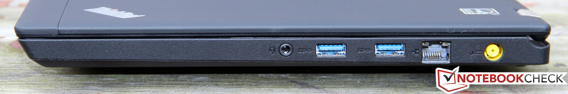 Die Schrumpfkur des Gehäuses blieb nicht ohne Folgen auf die Schnittstellenausstattung: Statt vier beziehungsweise drei USB-Ports (T430/T430s) gibt es beim T430u nur noch deren zwei, die aber immerhin beide den USB-3.0-Standard beherrschen. Dennoch erscheint uns dies für ein Profigerät etwas knapp bemessen, sodass der Anwender unter Umständen auf einen zusätzlichen USB-Hub zurückgreifen muss. Weiterhin fehlt der bislang obligatorische VGA-Ausgang, der dafür durch HDMI ersetzt wurde. Zusammen mit dem Mini-DisplayPort und der internen Anzeige können so bis zu drei Displays parallel angesteuert werden.