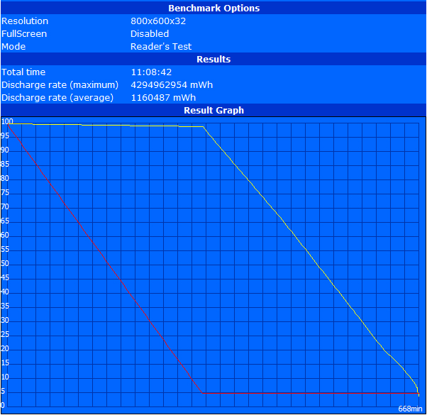 Die insgesamt geringe Leistungsaufnahme ist der wesentliche Faktor, warum die vergleichsweise geringe Akkukapazität von 48 Wh dennoch für ansprechende Akkulaufzeiten sorgt. Beim Battery Eater Readers Test (maximale Energiesparoptionen, minimale Displayhelligkeit, Funk aus) erreicht das ThinkPad T440s schon mit dem kleinen Zusatzakku über 11 Stunden Netzunabhängigkeit. Dieser beeindruckende Wert zeigt jedoch nur, was theoretisch möglich ist und hat wenig mit dem realen Arbeitsverhalten zu tun. Daher reduziert sich die Laufzeit recht drastisch, wenn man das Funkmodul beim Internetsurfen belastet (Energiesparprofil, Helligkeitsstufe 12 (155 cd/m²), Funkmodule an). Hier sorgen vor allem die erhöhte Displayhelligkeit und das WLAN-Modul für einen entsprechenden Mehrverbrauch. Von den 11 Stunden bleiben dann nur noch knapp 6 Stunden übrig. Unter Volllast wiederum profitiert das System von der eingebremsten CPU-Leistung und erreicht beim Battery Eater Classic Test (Höchstleistungsprofil, Funk an, maximale Displayhelligkeit) noch schmeichelnde 109 Minuten.