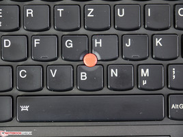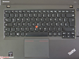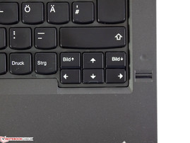 Die Tastatur im Chiclet-Design ist sehr gelungen und repräsentiert die typischen ThinkPad-Qualitäten. Die Tasten verfügen über einen mittel-kurzen Hub, bieten einen guten Druckpunkt und ein recht leises Anschlagsgeräusch. Die Tastaturmatte liegt fest auf und lässt sich nur minimal durchbiegen. Ein Nachwippen der Tasten, ein Klappern oder sonstige Schwächen lassen sich nicht erkennen. Für einen kleinen Kritikpunkt sorgen die Pfeiltasten für den vertikalen Bereich. Sie liegen etwas dicht beieinander und provozieren dadurch hin und wieder mal eine Fehlbedienung. Ansonsten sind die Tasten ausreichend groß, im 19-mm-Raster angeordnet und kontraststark beschriftet.