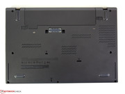 Nach dem Entfernen von 8 Kreuzschrauben am Unterboden kann man die Abdeckung entfernen und gelangt an die wesentlichen Komponenten. Zusätzlich zu den Schrauben sind hier Haltenasen vorhanden, die man mit etwas Druck lösen muss. Wir haben das beim fabrikneuen Testgerät mit Rücksicht auf den Leihsteller nicht durchgeführt. In Lenovos Hardware Maintenance Manual zum ThinkPad T440s sind alle notwendigen Schritte wie gewohnt ausführlich beschrieben und bebildert. Hier findet man auch Hinweise, welche Komponenten vom Anwender selbst getauscht werden dürfen. Erreichbar sind unter anderem der freie RAM-Steckplatz, der Massenspeicherschacht, der Lüfter und der verschraubte interne Akku. Beim Testmodell ungenutzt ist ein M.2-Steckplatz, der entweder ein M.2-Solid State Drive oder eine M.2-WWAN-Karte aufnehmen kann.