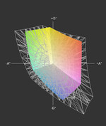 Der Kontrast ist mit 237:1 mehr als dürftig und hauptverantwortlich dafür, dass die Farben flau und das Schwarz eher grau wirken. Bei Fotos, Filmen und Spielen ist die Darstellung daher wenig lebendig und kaum naturgetreu. Der sRGB-Farbraum wird zudem lediglich zu etwa 60 % abgedeckt. Einschränkungen muss man hier vor allem im Magenta-, Rot- und Grün-Bereich hinnehmen.