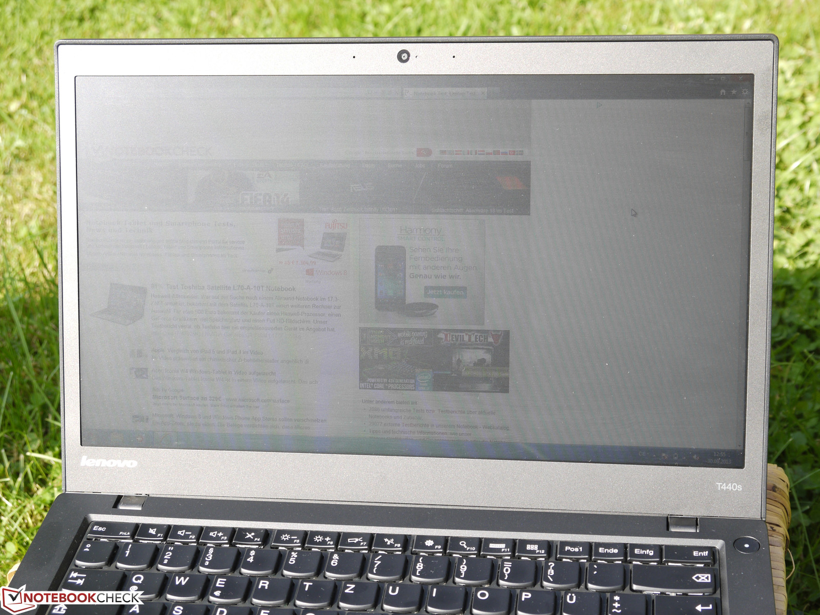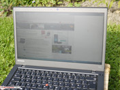 Beim Außeneinsatz profitiert das ThinkPad T440s von einer ungedrosselten Leuchtkraft im Akkubetrieb. Dank der matten Oberfläche kann man beim Testgerät unter freiem Himmel Bildinhalte meist gut erkennen. Störende Spiegelungen bleiben aus. Vermeiden muss man jedoch eine direkte Sonneneinstrahlung, weil sonst so gut wie nichts mehr zu erkennen ist.