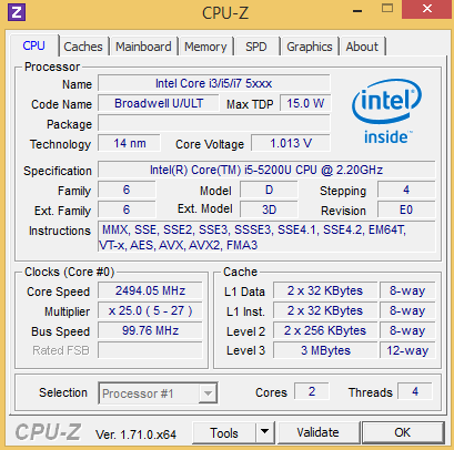 | Core i5-5200U | Core i5-5200U | Core i7-5600U |