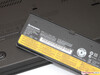 Zum einen sei erwähnt, dass die GeForce Variante des ThinkPads ohne SmartCard Reader und ohne Docking-Station-Anschluss daherkommt – ob es sich dabei um eine technische oder eine produktpolitische Limitierung handelt, lässt sich nicht mit letzter Sicherheit sagen. Zum anderen bitten wir zu beachten, dass der serienmäßige 24-Wh-Akku in diesem Test durch das aufpreispflichtige 72-Wh-Modell (zzgl. 50 Euro) ersetzt wurde. Zusammen mit dem internen 24-Wh-Zweitakku verdoppelt sich somit die Gesamtkapazität von 48 auf 96 Wh. Allerdings hebt der mächtige 6-Zellen-Speicher das Notebook an der Rückseite gut einen Zentimeter an und treibt auch das Gewicht knapp 200 Gramm nach oben.