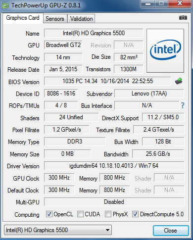 | HD Graphics 5500 | HD Graphics 5500 | HD Graphics 5500 |