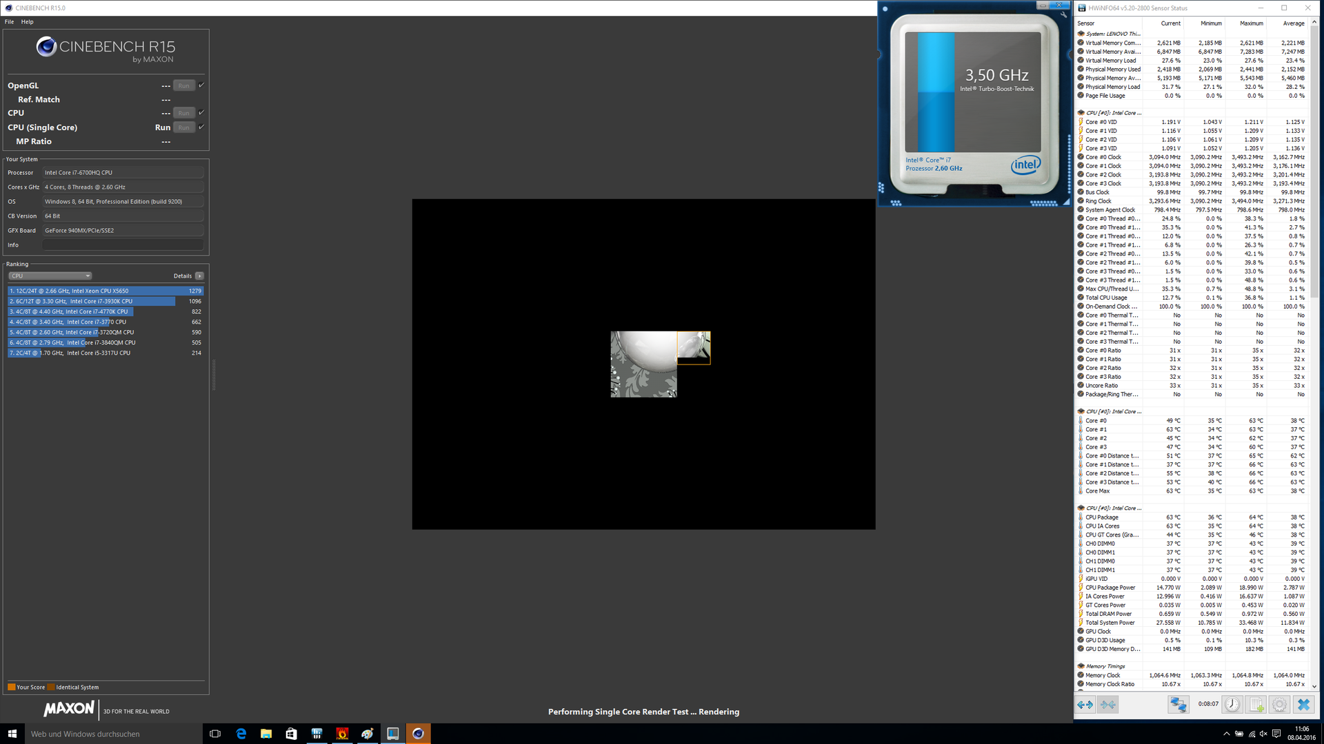 Mit einer Taktrate von 2,6 bis 3,5 GHz (2 Kerne: 3,3 GHz; 4 Kerne: 3,1 GHz) liegt der Core i7-6700HQ exakt auf dem Niveau des bereits getesteten i5-6440HQ, unterstützt im Gegensatz zu diesem aber zusätzlich Hyper-Threading zur parallelen Bearbeitung von bis zu acht Threads. Sämtliche ULV-Modelle, wie sie beispielsweise im Schwestermodell T460s zu finden sind, bieten dagegen maximal zwei Kerne und vier Threads. Im Gegenzug begnügt sich die U-Serie mit nur 15 Watt TDP, während die Quad-Core-Boliden satte 45 Watt verbraten dürfen; dieser Wert kann vom Notebook-Hersteller allerdings (innerhalb gewisser Grenzen) angepasst werden.