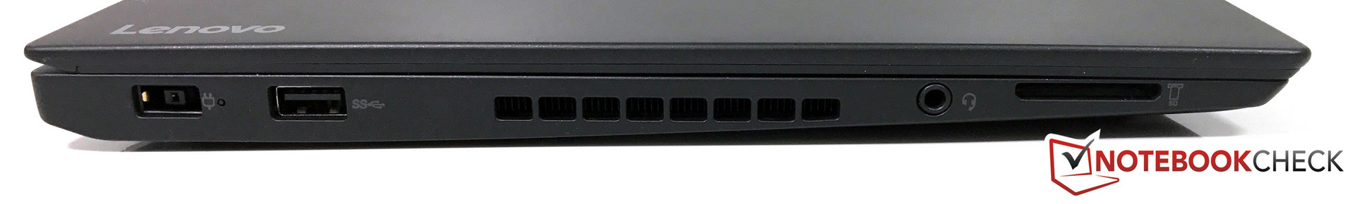 Lenovo hat in dieser Sektion nur eine Änderung gegenüber dem alten ThinkPad T460s vorgenommen: Der Mini-DisplayPort wurde durch einen modernen USB-C-Anschluss (Gen. 2) samt Thunderbolt-3-Unterstützung mit den vollen 40 Gbit/s ersetzt. Zudem beherrscht dieser Anschluss auch die Stromversorgung (Power Delivery 2.0) und die Bildausgabe via DisplayPort 1.2a. Passenderweise wird unser Testgerät direkt mit einem 65 Watt starken USB-C-Netzteil ausgestattet. Die Positionierung im mittleren Bereich der rechten Seite ist jedoch ein Problem. Auf dieser Seite lässt sich keine Maus bedienen, und insgesamt stört das Kabel in diesem Bereich – im hinteren Bereich hätte der Anschluss deutlich besser gepasst.