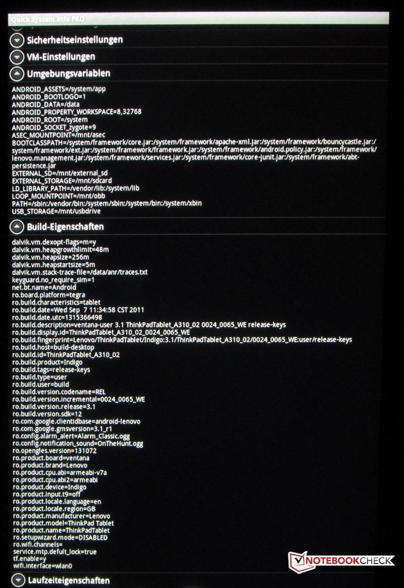 Beim Linpack Pro Test erklomm das Lenovo mit 39.451 MFlops den dritten Platz und musste nur dem Samsung Galaxy Tab 10.1v und dem HTC Flyer die besseren Plätze abtreten.