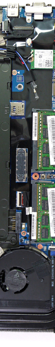Weitere WLAN- und WWAN-Module (alle M.2) sind erhältlich. Für ein nachträgliches Integrieren einer WWAN-Karte (HSPA+ oder LTE) sind bereits die notwendigen Antennen verbaut.