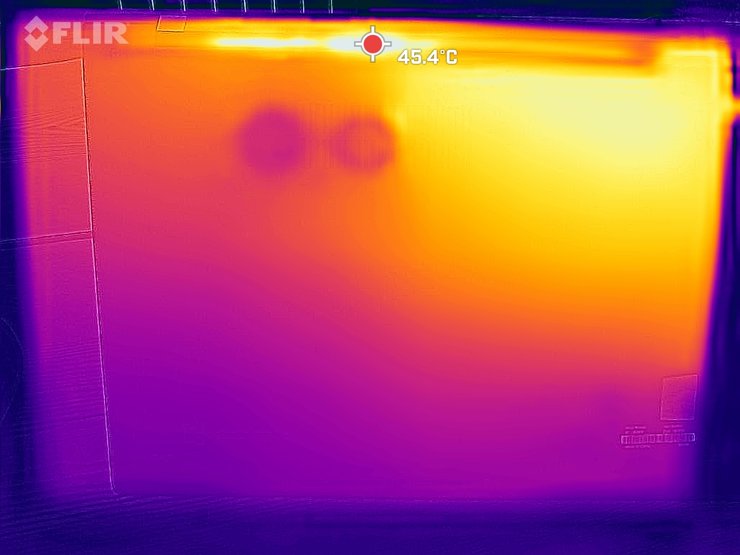 (±) Auf der Unterseite messen wir eine maximalen Wert von 44 °C (im Vergleich zum Durchschnitt von 36.8 °C).