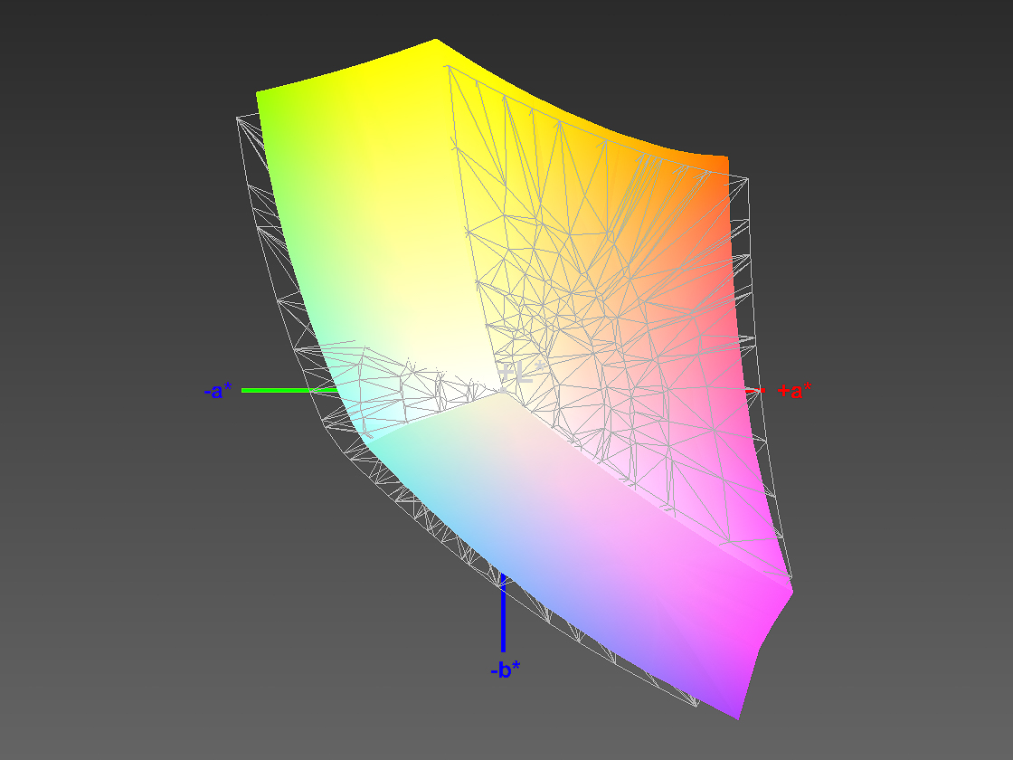 Die beiden einzigen Notebooks im Test mit akzeptabler Farbgenauigkeit im Auslieferungszustand sind das Testgerät sowie das HP EliteBook 840 G5. Dabei gilt, dass Delta-E-Werte von bis zu 3 Farbabweichungen repräsentieren, die das menschliche Auge nicht mehr wahrnehmen kann. Nach erfolgter Kalibrierung und Profilierung (Farbprofil im Kasten verlinkt) liegen die ColorChecker- und Graustufenwerte gar im mustergültigen Bereich. Da auch die Farbtemperatur ab Werk mit 6571 K sehr nahe am Soll von 6500 K liegt, steht ambitionierter Bildbearbeitung im Hobbybereich eigentlich nichts im Wege. Eigentlich deshalb, weil auch der kleine Standardfarbraum sRGB nur zu 95 % abgedeckt wird. Etwas näher an den 100 % könnte der Farbumfang für eine uneingeschränkte Empfehlung durchaus noch liegen.