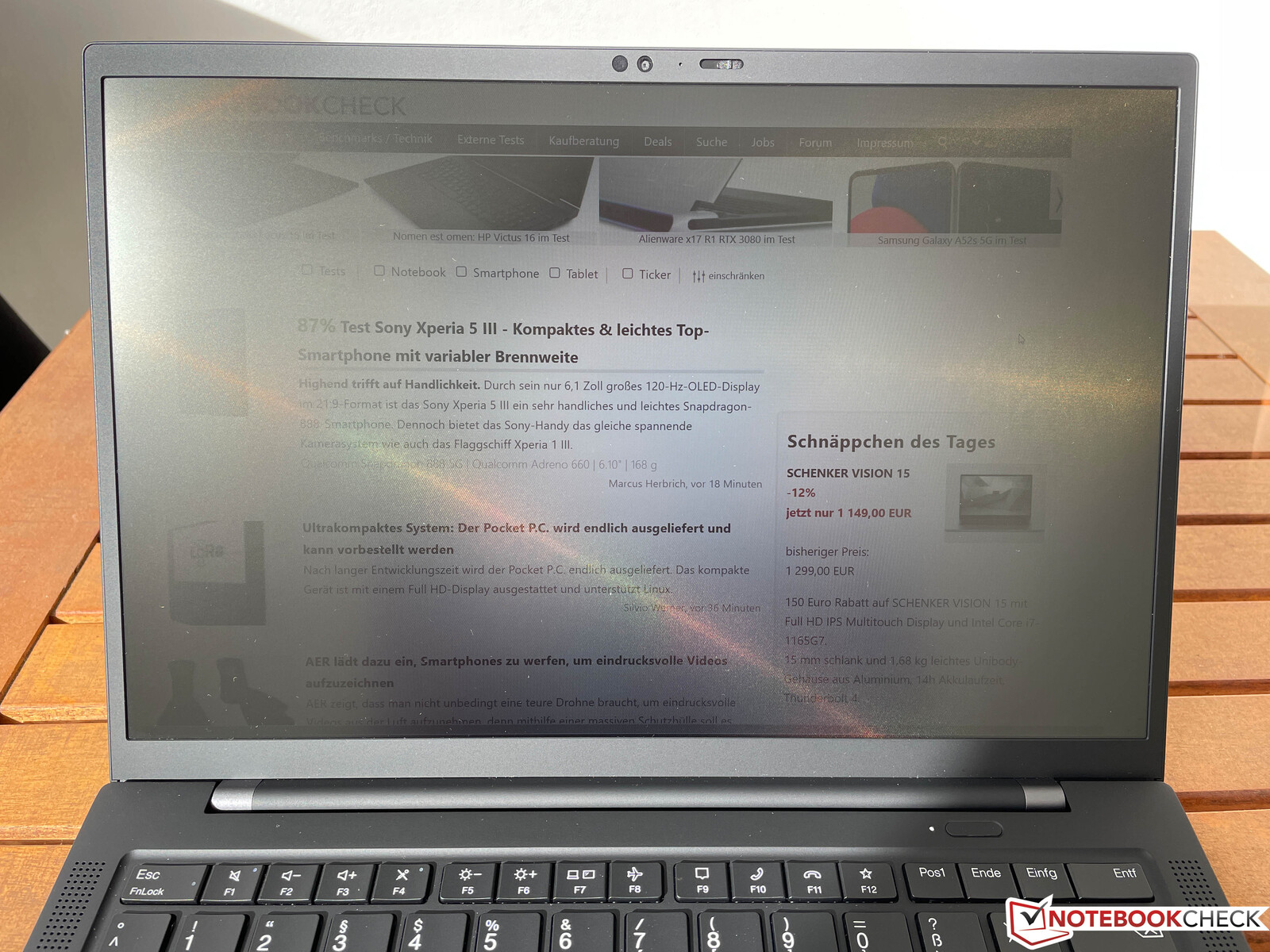 Trotz der matten Oberfläche und der hohen maximalen Helligkeit schränkt der Sichtschutzfilter die Nutzbarkeit im Freien sichtbar ein. Bei der Blickwinkelstabilität sieht man ebenfalls schnell einen Abfall der Helligkeit und des Kontrastes.