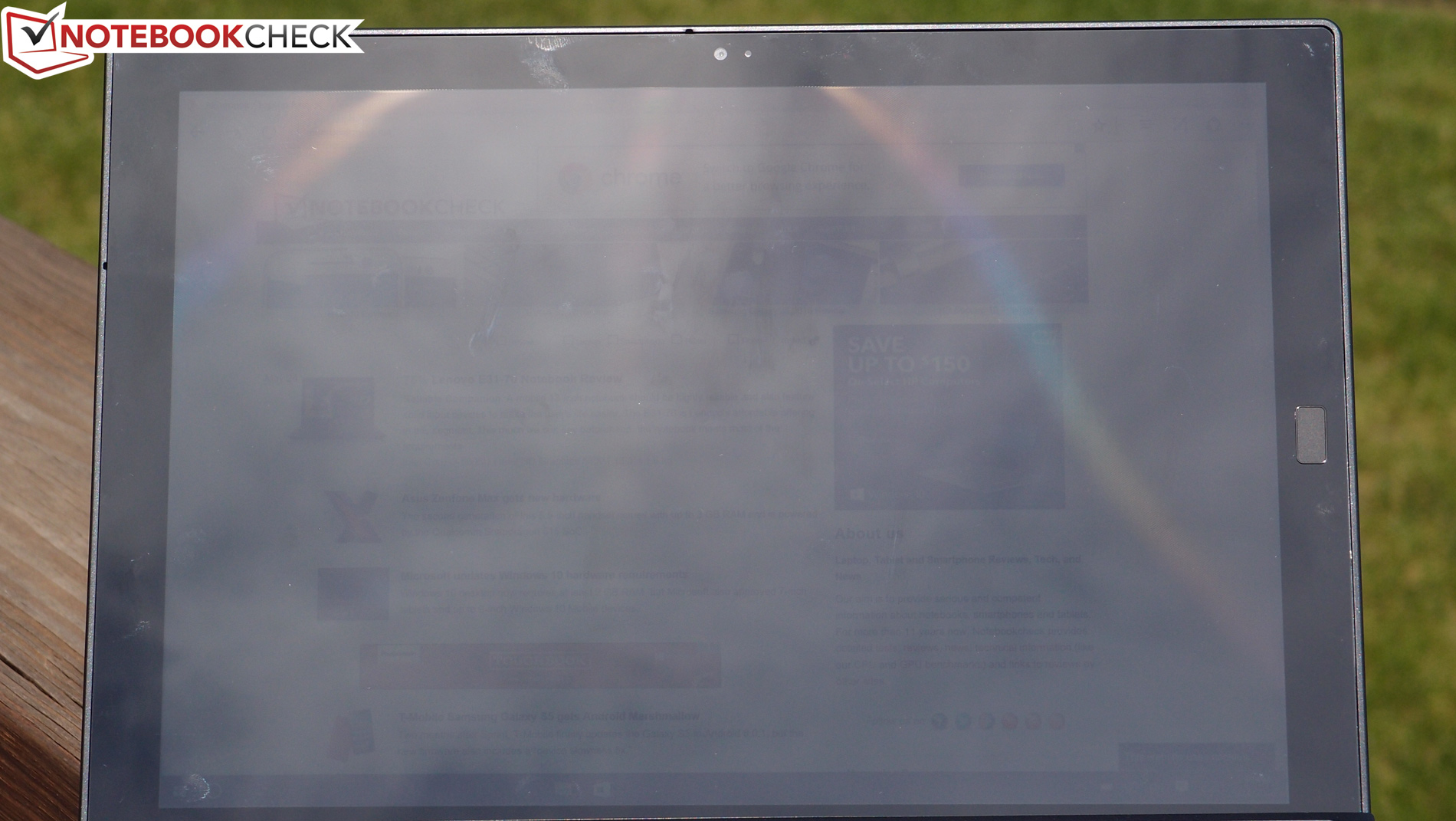 Die gemessene durchschnittliche Helligkeit von 315 cd/m² ist ziemlich gut, jedoch nicht so hell wie bei den meisten Konkurrenten (die sich zwischen 301 und 399 cd/m² einordnen). Die Ausleuchtung von 85 % bedeutet, dass der Bildschirm mit bloßem Auge in allen Quadranten ziemlich gleichmäßig erscheint. Der Kontrast von 460:1 ist hier der schwächste Punkt, wobei einige Konkurrenten (etwa das Surface Pro 4 und das Dell XPS 12) 1.000:1 übertreffen. Dennoch ist die Bildqualität überwiegend positiv.