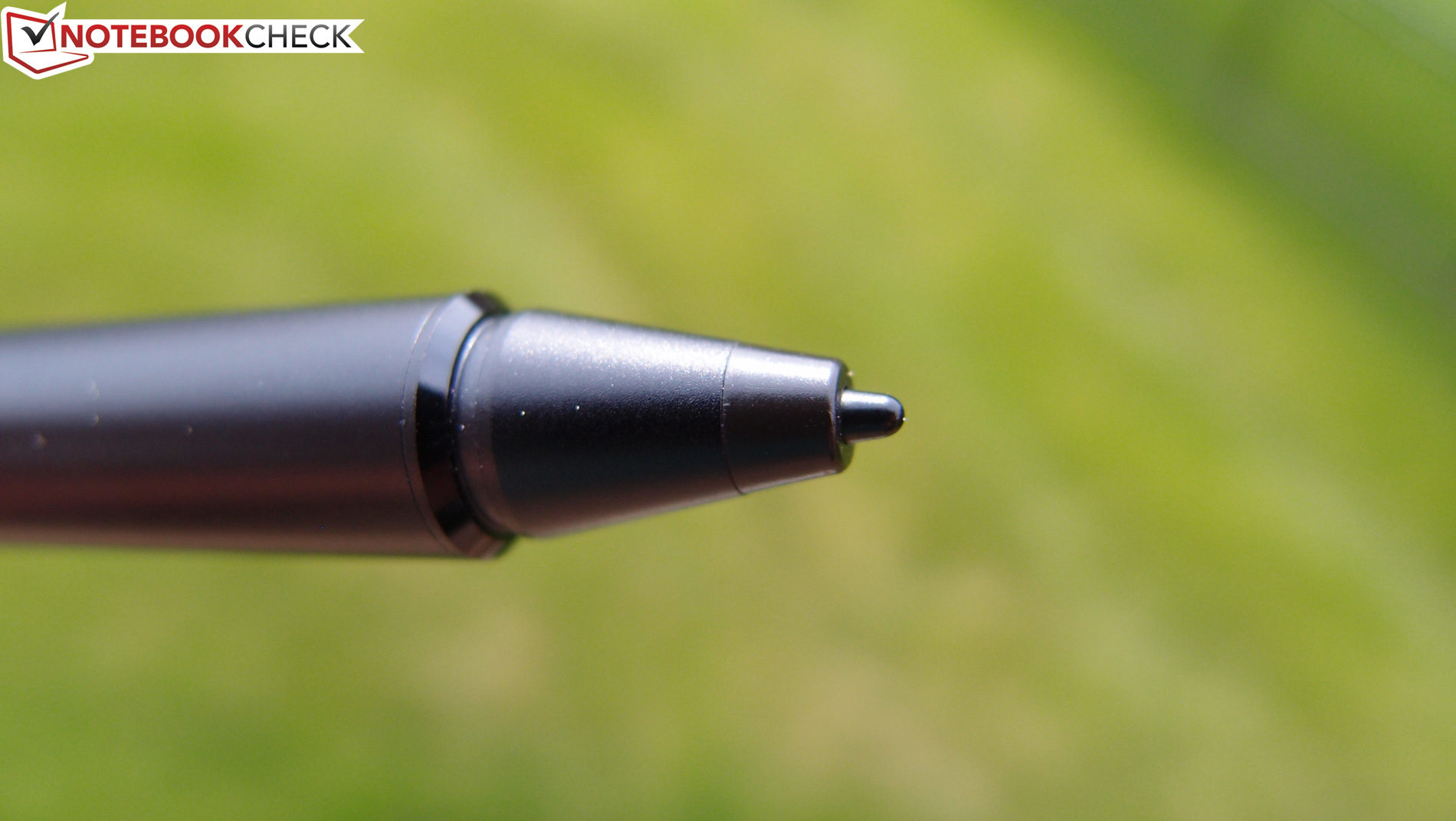 Der Stift funktionierte im Test gut, bietet aber nicht ganz so viele Features wie der Surface Pen. Für Einsteiger sei angemerkt, dass die Spitzen nicht austauschbar sind, doch das werden die meisten User nicht vermissen. Weiters fehlt die Spitze zum Löschen, die der Surface Pen an der Rückseite bietet. Außerdem gleitet die Spitze freier über den Bildschirm, da sie aus Kunststoff ist, während beim Surface ein Gummi-Verbund benutzt wird. Mit 2048-stufiger Druckempfindlichkeit ist die Leistung trotzdem sehr gut. In Kombination mit der vorinstallierten WRITEit-App funktioniert Texteingabe in praktisch jedem Feld ziemlich reibungslos.