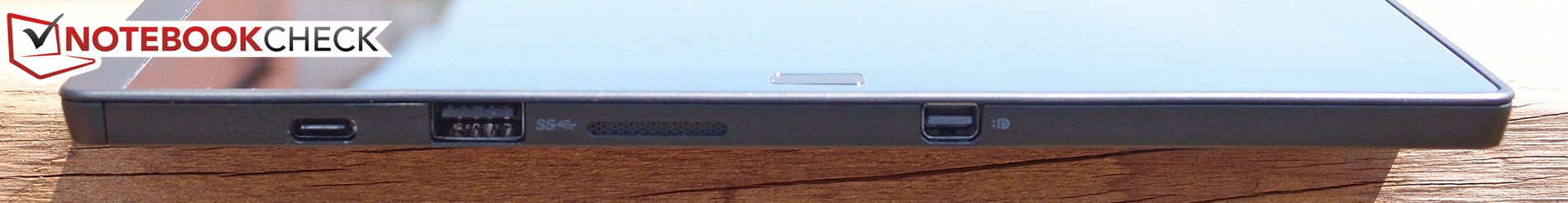 Obwohl kaum ein Tablet in puncto eigener Schnittstellenausstattung mit einem Laptop mithalten kann, bietet das ThinkPad X1 zumindest das Grundlegende mit etwas mehr Flexibilität als manch andere Geräte. Es gibt zwei USB-3.0-Ports, einer davon ist in voller Größe, und der andere als USB-Typ-C-Port ausgeführt, der auch zum Aufladen genutzt wird. Zudem sind anfangs einige der Schnittstellen versteckt: Die untere Kantenabdeckung verbirgt den Modul-Docking-Port und der Kickstand versteckt den MicroSD-Slot. Keines davon ist grundsätzlich problematisch, denn wahrscheinlich wird auf beide nicht regelmäßig zugegriffen.