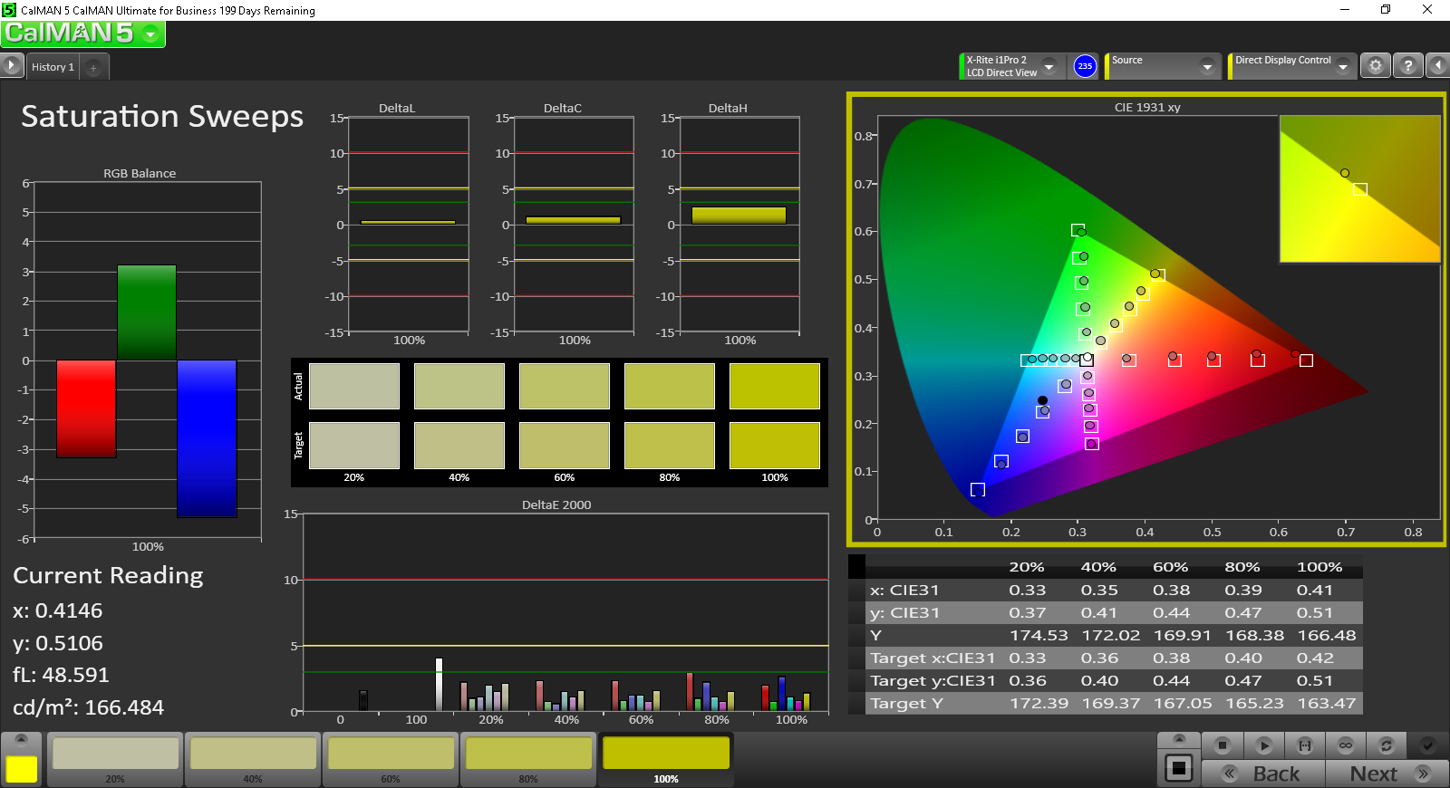 | sRGB Coverage (%) | 93 | 99.8 7% | 71.8 -23% | 85.5 -8% | 63.6 -32% | 96.6 4% |