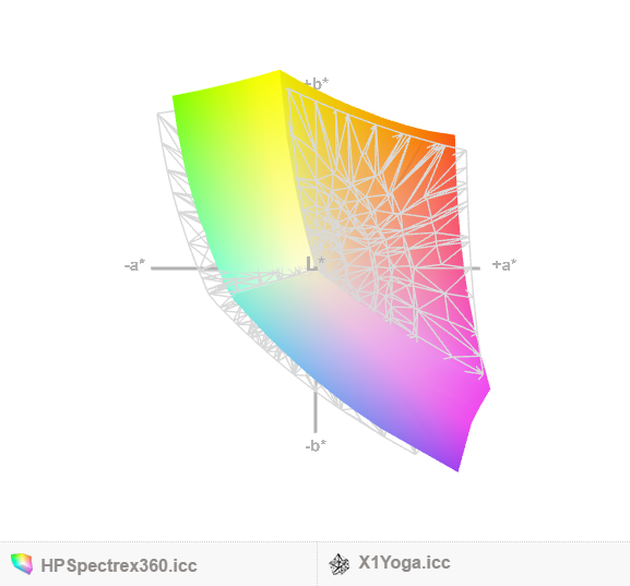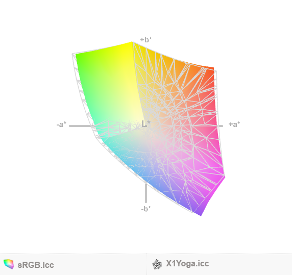 Die Farbabdeckung von sRGB und AdobeRGB ist zirka 95 bzw. 70 % - ein ziemlich gutes Ergebnis. Die sRGB-Abdeckung liegt innerhalb eines Prozentpunkts vom Surface Book, was das X1 für jene interessant machen könnte, die Fotobearbeitung oder ähnliche Aufgaben planen.