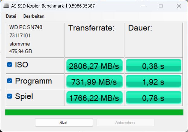 Für Wi-Fi ist das bekannte Modul Intel AX211 mit WiFi 6E zuständig. Die Übertragungsraten sind sowohl in 6 GHz als auch in 5 GHz sehr hoch.