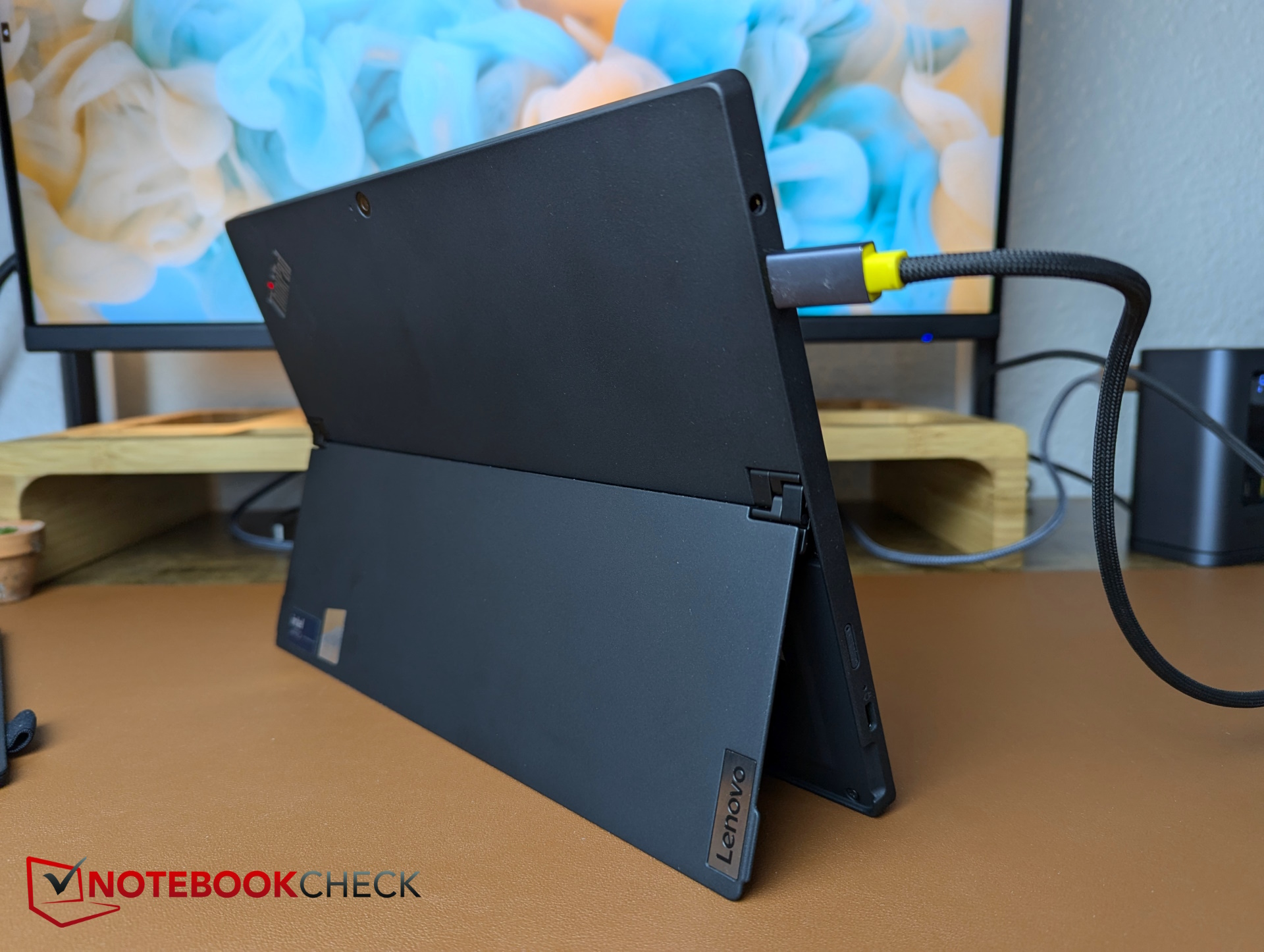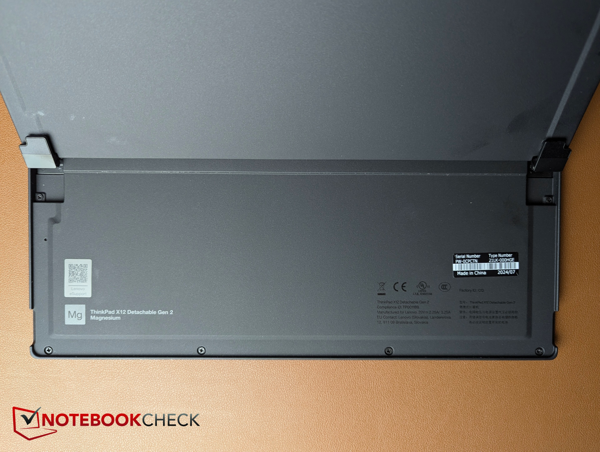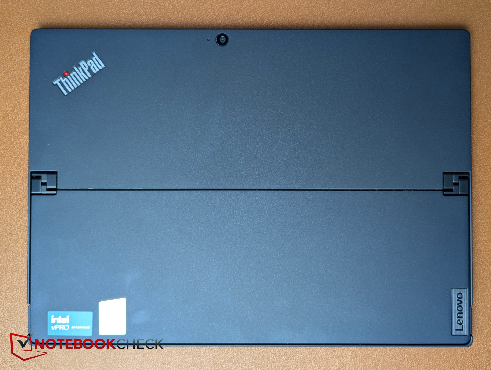 Trotz der dreijährigen Pause hat sich optisch äußerlich kaum etwas verändert. Die dunkelgraue bis schwarze Oberseite des X12 ist aus stabilem, leicht angerautem Magnesium gefertigt, die Innenseite mit dem Display besteht aus Edge-to-Edge-Glas. Nur die abnehmbare Tastatureinheit besteht aus Kunststoff, ist aber ebenso wie die Tableteinheit sehr stabil. Keines der beiden Teile knackt oder lässt sich besonders stark verwinden. An der Tablet-Rückseite befindet sich ein Standfuß, denn die untere Hälfte lässt sich zu einem solchen ausklappen. Das Tablet alleine wiegt knapp 750 g, mit der Tastatureinheit zusammen sind es dann 1.100 g (mit Stift).