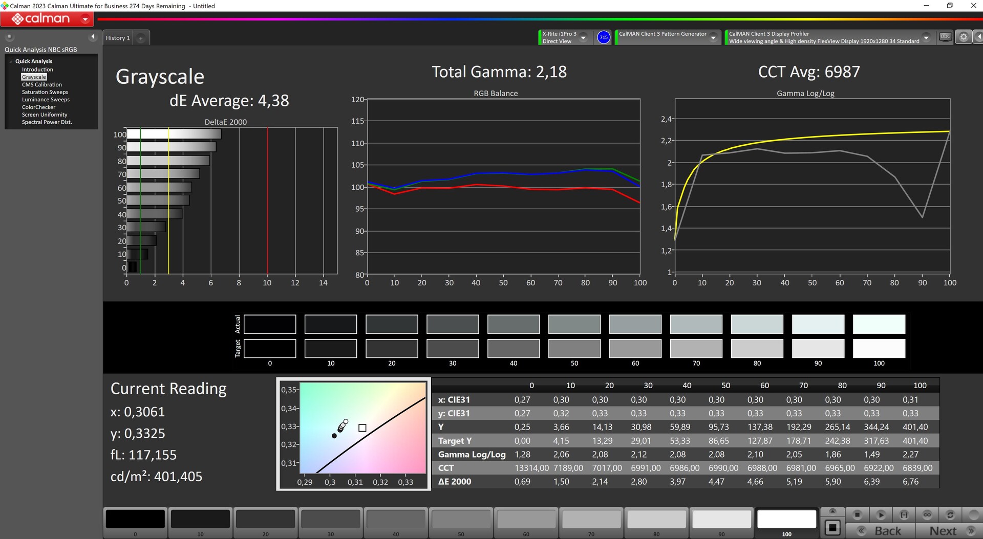 ΔE Greyscale Calman: 4.38 | ∀{0.09-98 Ø5}