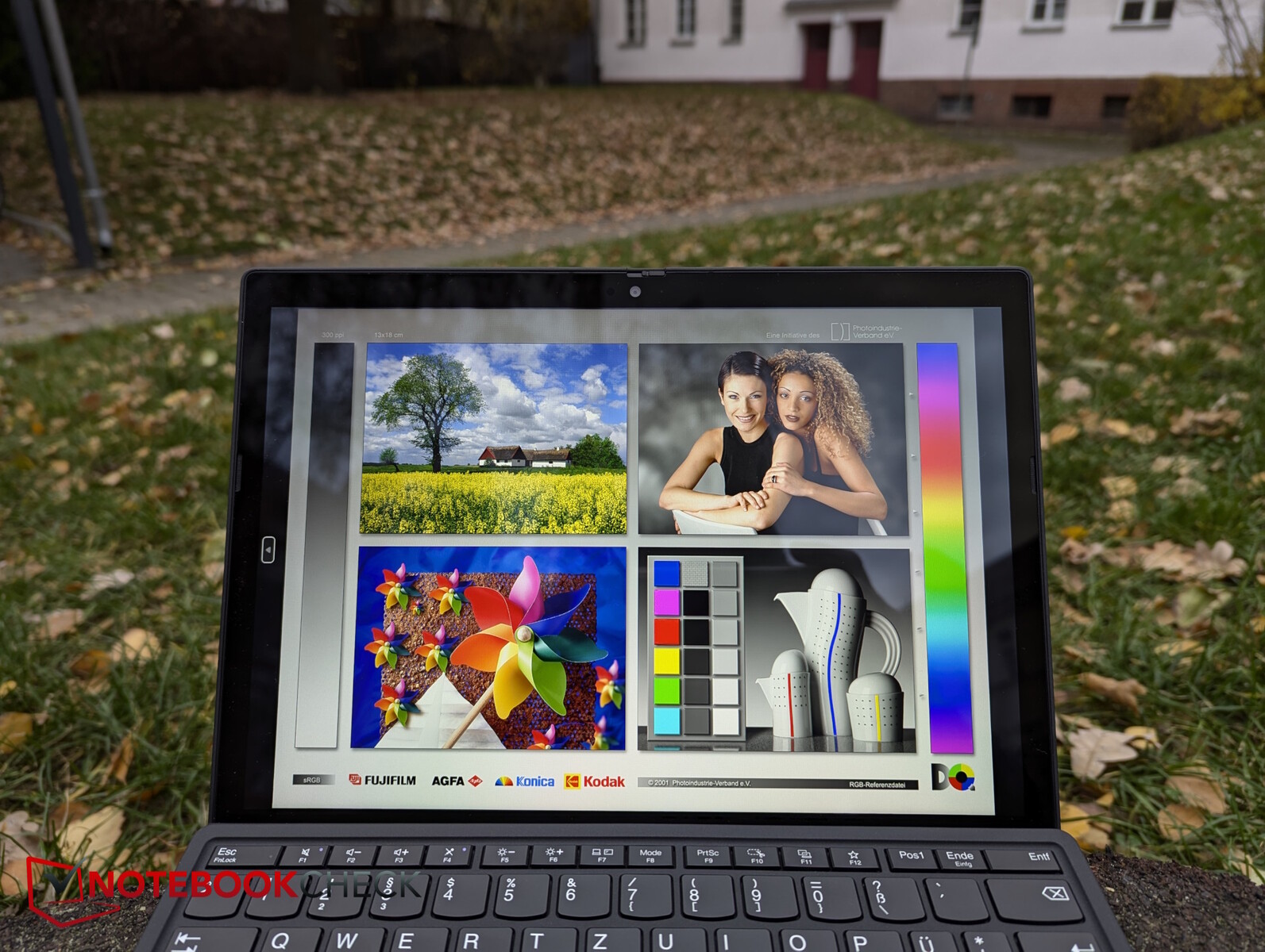 Es ist schon interessant zu sehen wie wenig Lenovo beim X12 seit dem G1 von 2021 geändert hat, auch das spiegelnde Touchdisplay mit 1.920 x 1280 Pixel scheint exakt das gleiche Modell zu sein, das Lenovo N123NCA-GS1 mit 60 Hz. Seine Oberfläche ist mit Corning Gorilla Glass 3 überzogen.