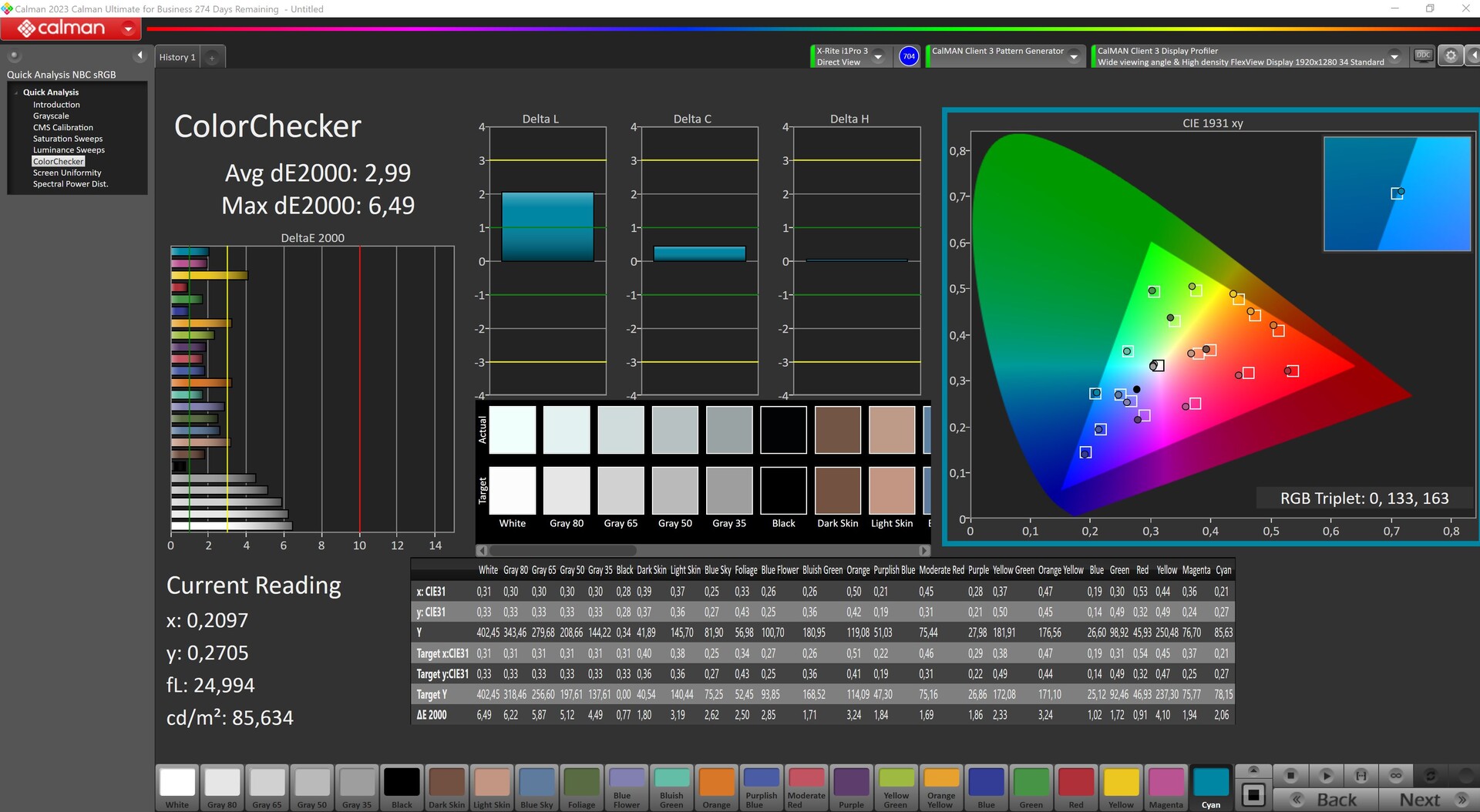 ΔE ColorChecker Calman: 2.99 | ∀{0.5-29.43 Ø4.77}