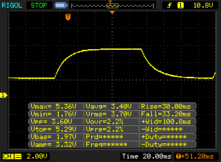 | 36 ms ... steigend ↗ und fallend ↘ kombiniert | ↗ 18 ms steigend | |