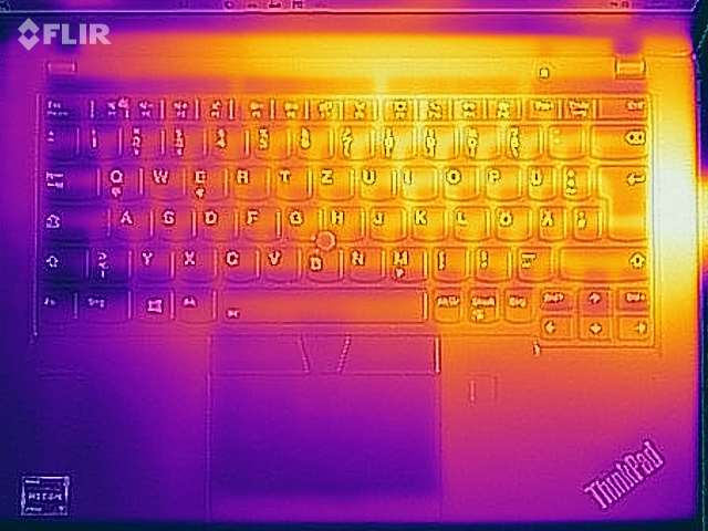 (+) Die Handballen und der Touchpad-Bereich erreichen maximal 34.2 °C und damit die typische Hauttemperatur und fühlen sich daher nicht heiß an.