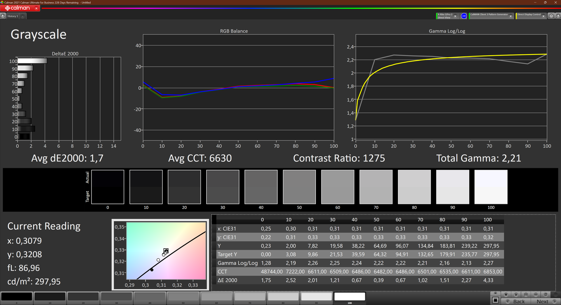 ΔE Greyscale Calman: 1.7 | ∀{0.09-98 Ø5}