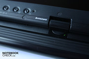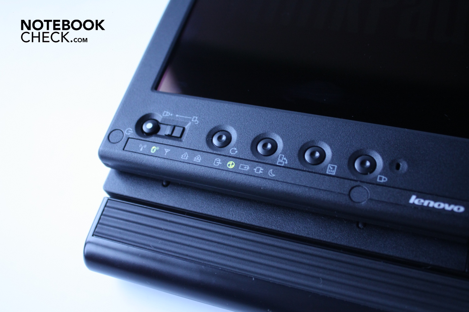 Übrigens haben die vier Knöpfe eine kleine Vertiefung, so dass man sie auch mit dem Touch-Pen leicht bedienen kann. Rechts im Monitor integriert ist der Fingerabdruckleser, der dafür sorgt, dass keine unautorisierten Nutzer auf das Thinkpad zugreifen können.