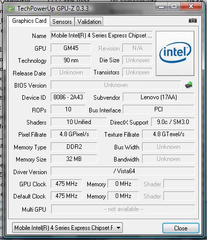 Als Grafikkarte kommt der in den Chipsatz integrierte Intel Graphic Media Accelerator 4500 MHD zum Einsatz. Der hat keinen eigenen Grafikspeicher, sondern zweigt sich einen Teil des Hauptspeichers ab, je nach Bedarf.