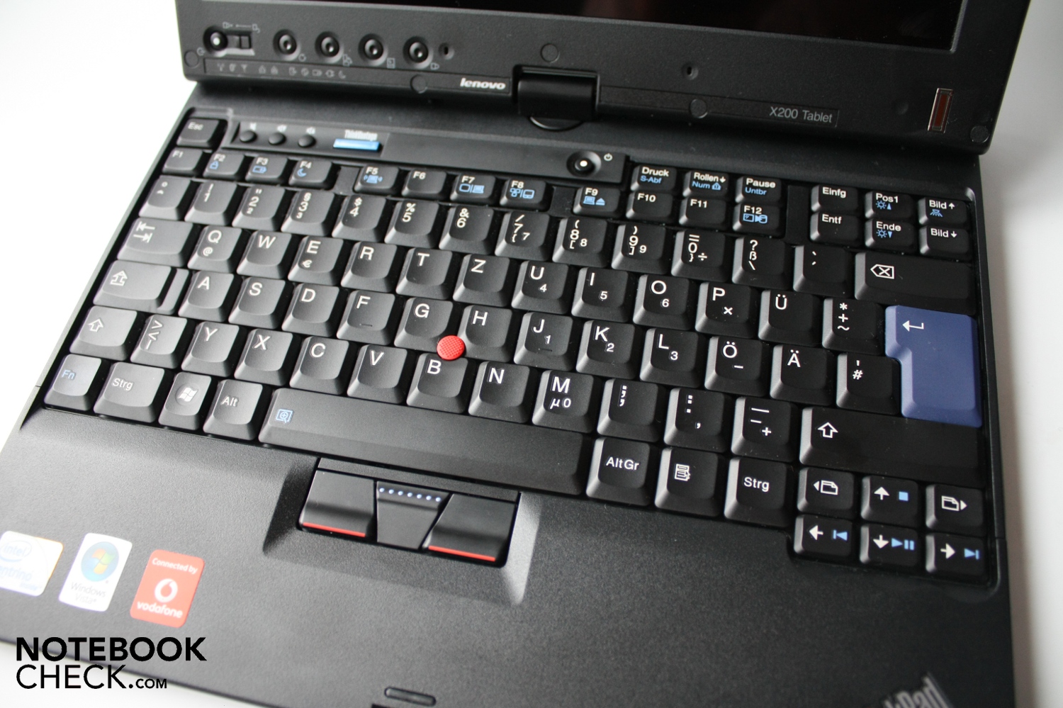 So klassisch wie das gesamte Design ist auch das Erscheinungsbild der Tastatur: Kein moderner Schnick-Schnack wie Chiclet-Tasten, sondern eine klassische Tastatur, wie sie ThinkPad-Fans kennen und lieben verbaut Lenovo beim X200T. Einen Nummerblock konnte man in das schmale Gehäuse zwar nicht zwängen, dafür sind alle übrigen Tasten großzügig dimensioniert. Die "F"-Tasten sind, ebenfalls üblich bei Lenovo, jeweils zu viert gruppiert.