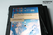 Die Bedienung geht sehr intuitiv von der Hand, allerdings ist die Erkennung der Stiftposition nicht immer optimal: Hält man den Stift zu schräg, kann es vorkommen, dass der Cursor zu weit nach links oder rechts rutscht und man neben eine Schaltfläche klickt. Mit dem Finger kann man den Spezial-Touchscreen übrigens nicht bedienen.