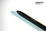 Wenn der Tablet-PC zugeklappt ist und die Tastatur damit hinter dem Monitor liegt, muss man natürlich trotzdem in irgendeiner Weise Texteingaben machen können. Dafür nutzt Lenovo ebenfalls den Touchpen, der in einem gesonderten Fenster einfach wie ein ganz normaler Kugelschreiber verwendet wird. Dreht man den Stift um, befindet sich dort eine Fläche, mit der man Texteingaben ausradieren kann.