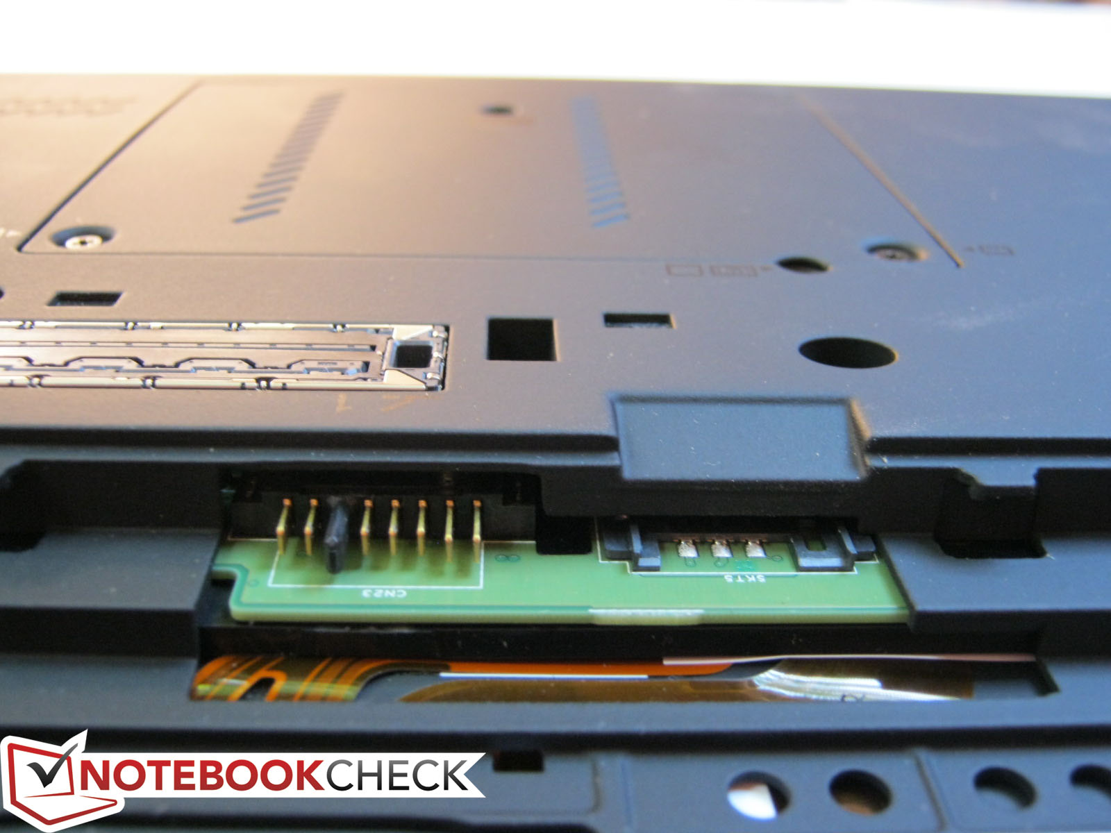 Erfreulicherweise sind die Karten dennoch bei Bedarf leicht durch den Benutzer tauschbar. Dazu müssen Tastatur und Handballenbereich mit Hilfe eines Kreuzschlitzschraubendrehers entfernt werden. Festplatte und Hauptspeicher sind nach Entfernen einiger Schrauben an der Unterseite noch einfacher erreichbar.