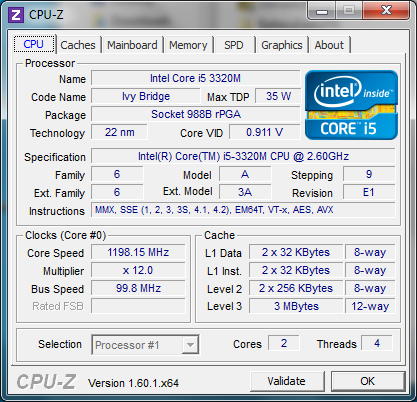 Die i5-3320M unterstützt wie sein größerer 32nm Bruder Turbo Boost und Hyper Threading bei 35 Watt TDP. Turbo Boost kann die Taktrate auf bis zu 3300MHz bzw. 3100MHz bei Single-Core- bzw. Multi-Core-Aufgaben erhöhen.