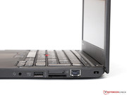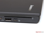 Mit weiterhin nur zwei USB-3.0-Ports gibt sich das ThinkPad nicht ganz so anschlussfreudig wie das Latitude E7250 oder EliteBook 820 G1 – beide Kontrahenten offerieren jeweils einen Port mehr. Ansonsten entspricht das Schnittstellenangebot dem üblichen Standard: Externe Monitore lassen sich wahlweise analog per VGA oder digital per Mini-DisplayPort (max. 3.840 x 2.160 Pixel, 30 Hz) ansteuern, hinzu kommen weitere gängige Features wie die Headset-Buchse oder der SD-/MMC-Kartenleser.