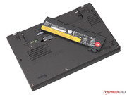 Mit dem ThinkPad X240 hat Lenovo das songenannte "Power Bridge"-System eingeführt, das sich aus einem integrierten 24-Wh-Akku sowie einem optionalen Zweitakku (24, 48 oder 72 Wh) hinten am Gerät zusammensetzt. Der Vorteil dieser Lösung: Der Zusatzspeicher kann im Betrieb entnommen oder ersetzt werden, ohne dass der Anwender das Notebook zuvor herunterfahren muss. Unser Testgerät kommt mit dem kleinen 24-Wh-Akku daher, der als einziger nahtlos in das Gehäuse passt.