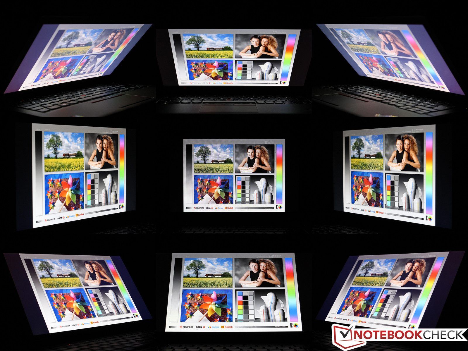Zu den Vorzügen eines IPS-Panels zählen nicht nur hohe Kontraste und kräftige Farben – auch die überlegene Blickwinkelstabilität rechtfertigt den Aufpreis gegenüber anderen Display-Technologien. Egal von welcher Seite man die Anzeige des ThinkPads betrachtet: Die Darstellungsqualität verändert sich selbst bei starken Abweichungen von der Mittellage kaum. Einzig beim Blick von schräg oben ist eine sichtbare Verschlechterung des Schwarzwertes erkennbar.